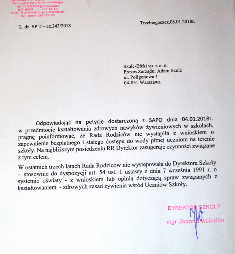 | Odpowiedź dyrektora szkoły | dodany: 18:38, 11.01.2018 | przez: Hanna Mazurkiewicz |